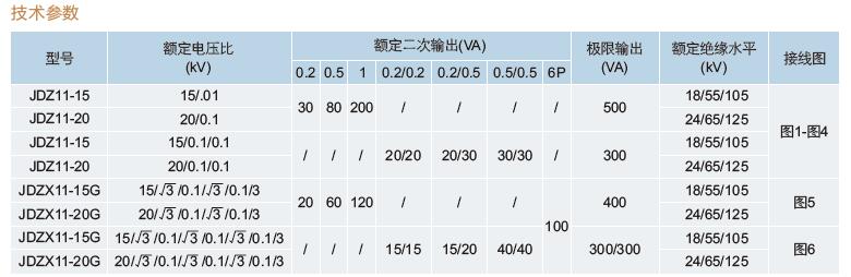 六、JDZ11-15、JDZX11-15、JDZ11-20、JDZX11-20G電壓互感器型號推薦