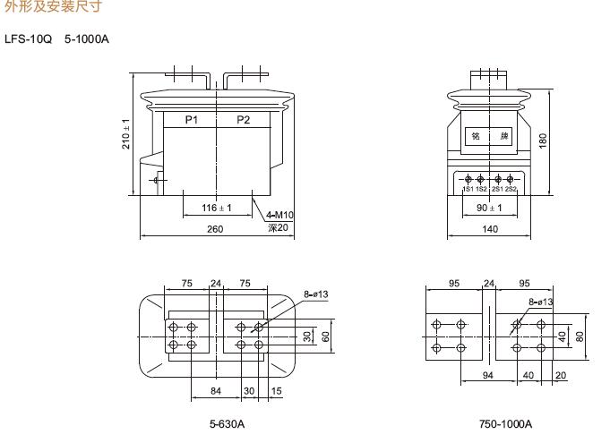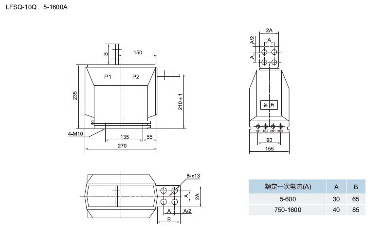 三、LFS-10Q、LFSQ-10Q電流互感器產(chǎn)品外形及安裝尺寸