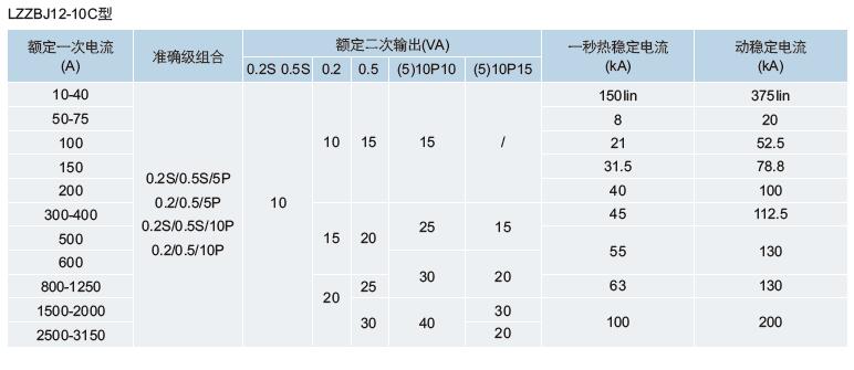 八、LZZBJ12-10A、LZZBJ12-10B、LZZBJ12-10C戶內電流互感器選型推薦: