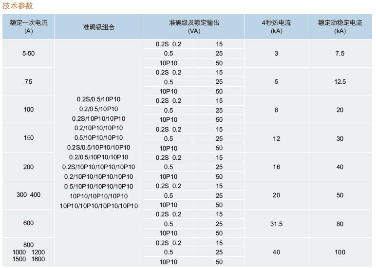 五、LZZBJ4-35支柱式電流互感器技術參數