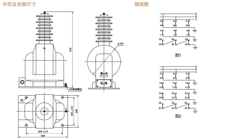 三、JDZXW-35戶外35kV電壓互感器尺寸及接線圖
